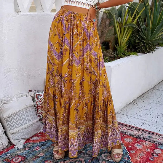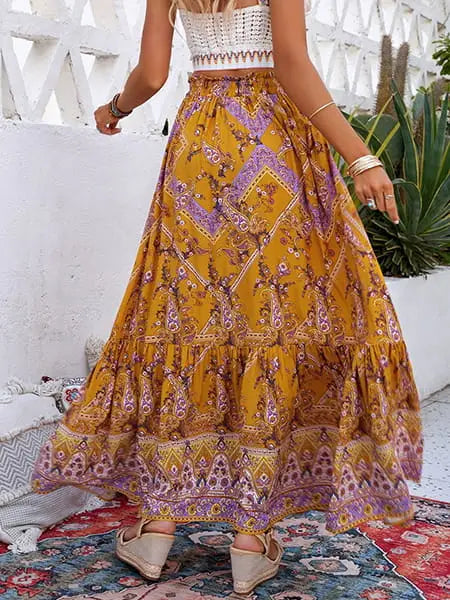 Légère, fluide et élégante, cette jupe fleurie vintage sublime votre silhouette avec charme. Son style bohème rétro et sa coupe évasée offrent un confort irrésistible au quotidien.