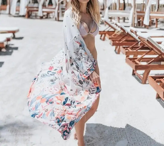 Kimono Blanc Fleuri - Vignette | Dame Fleur