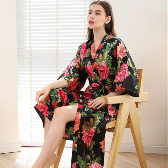 Enveloppez-vous de légèreté satinée et d’imprimés fleuris pour des instants de détente raffinés. Ce kimono fleuri sublime votre silhouette tout en vous offrant un confort absolu.