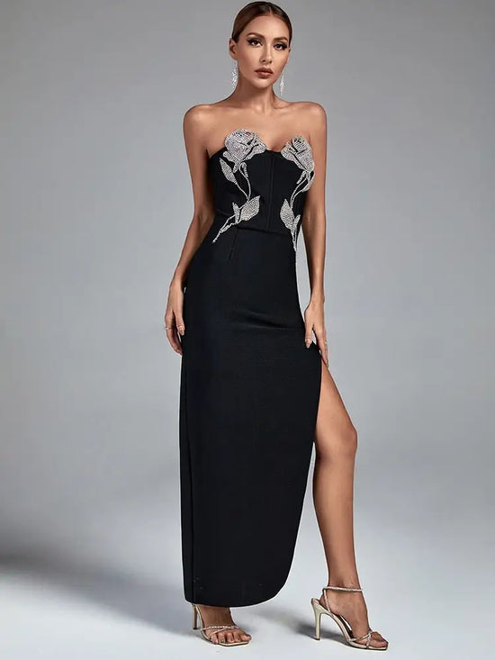 Offrez-vous une allure inoubliable avec cette robe fendue élégante, à bustier floral, parfaite pour les cérémonies en été ou au printemps. Une touche glamour et intemporelle.