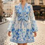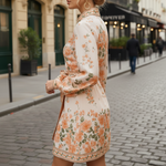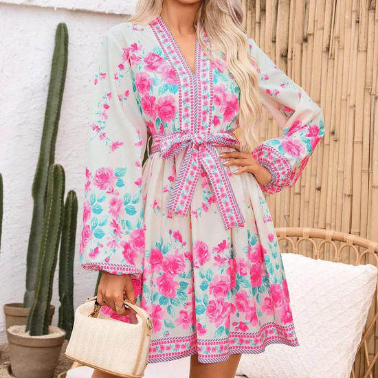 Restez chic même en hiver avec cette robe fleurie courte, col en V flatteur, manches longues et allure fluide. Confort, féminité et style assurés.
