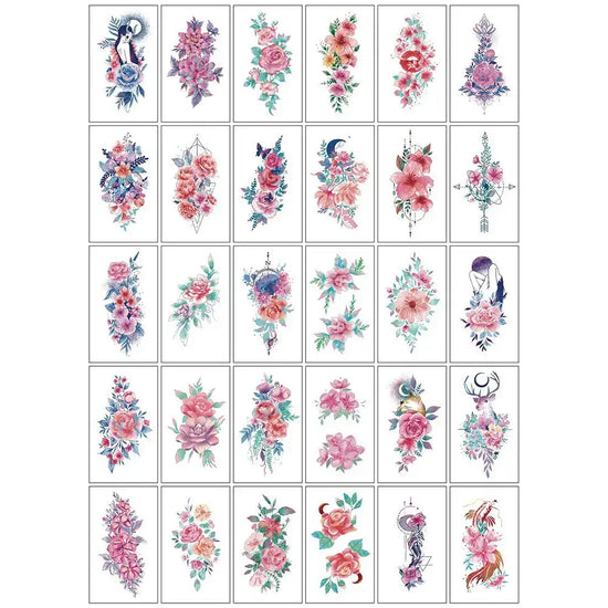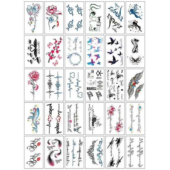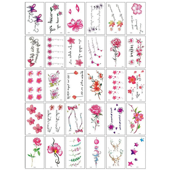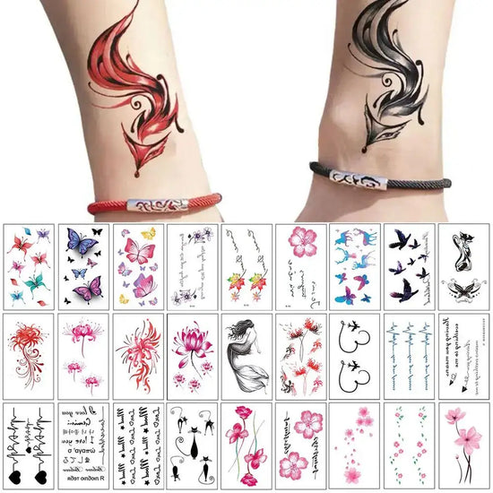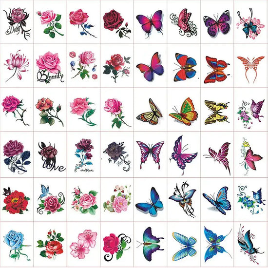 Tatouages Éphémères Fleur et Papillon – Pack 10 à 50 pièces