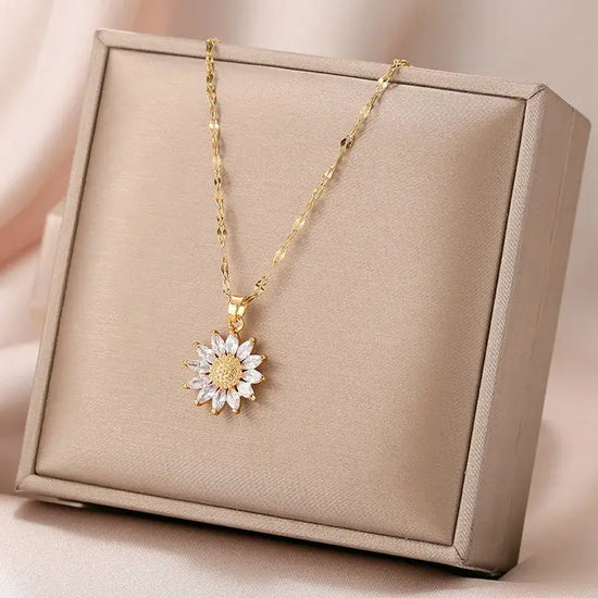 Offrez-vous une touche de rayonnement avec ce Collier Fleur Tournesol Plaqué Or 18K, symbole intemporel de joie et d’élégance, idéal pour illuminer chaque instant de vie et sublimer votre style.